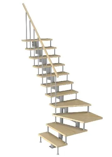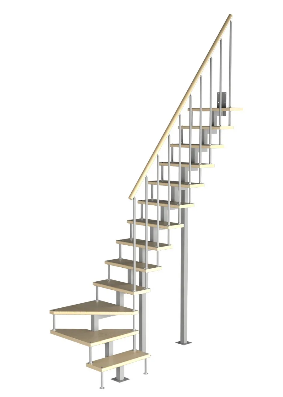 Компактная лестница, легко поддается доработке по высоте на объекте. Удобный поручень по второму маршу обеспечивает безопасность и законченный эстетический вид. Монтаж осуществляется силами двух человек на объекте по указаниям, приведенным в паспорте на лестницу.