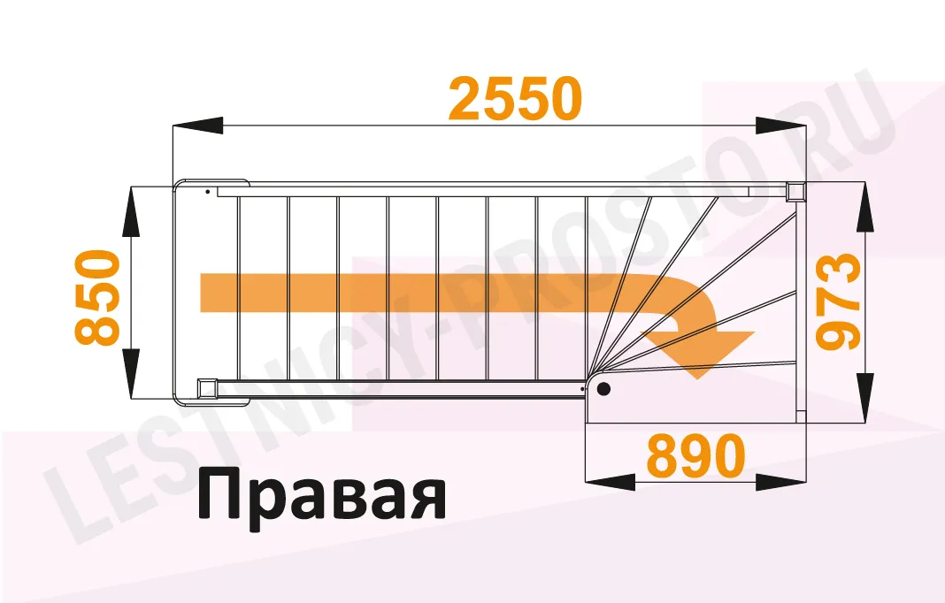 Схема лестницы ЛС-215М с поворотом направо