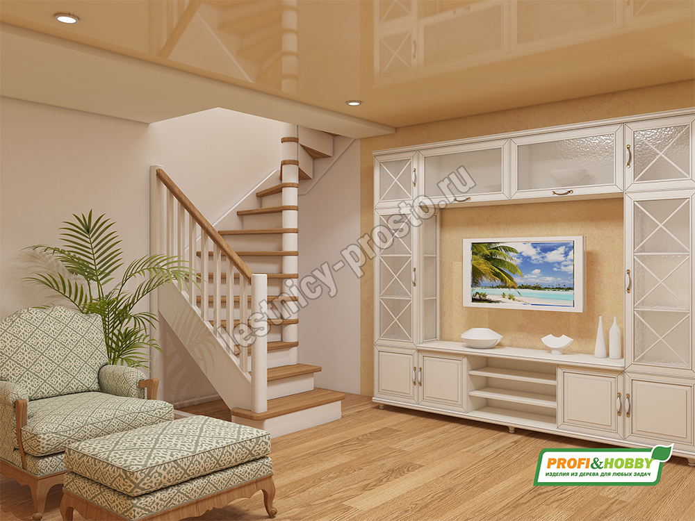 Ступени и поручень лестницы изготовлены из дуба, остальные элементы из сосны.