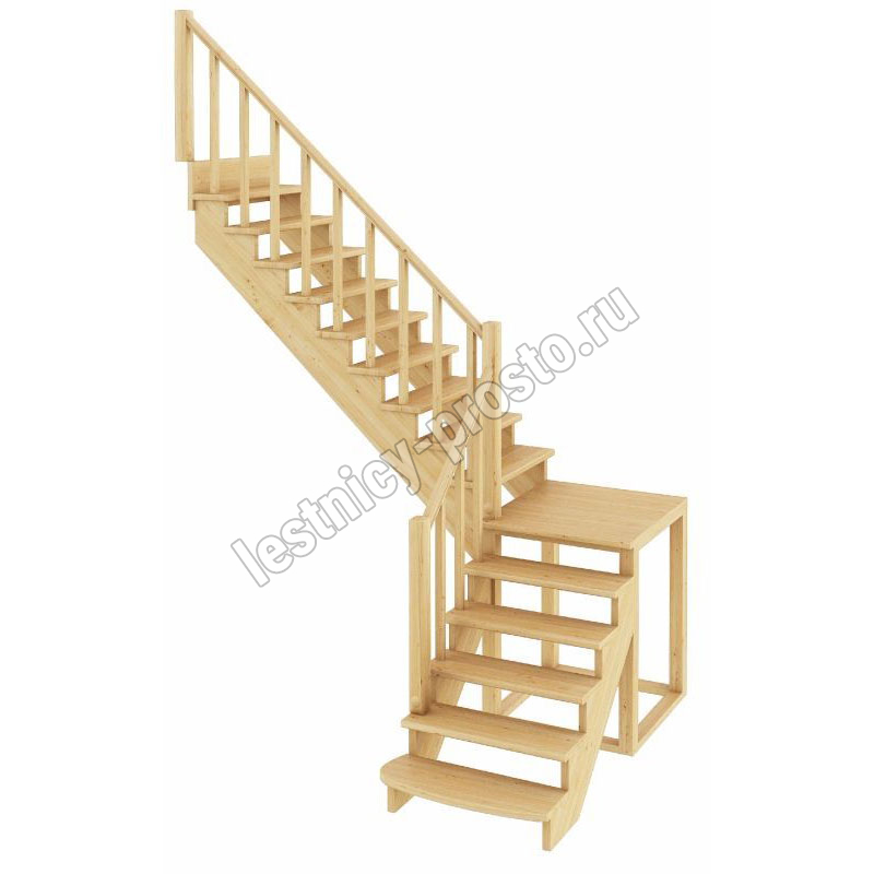 Базовый комплект включает в себя деревянные элементы лестницы и ограждения без какого-либо покрытия.