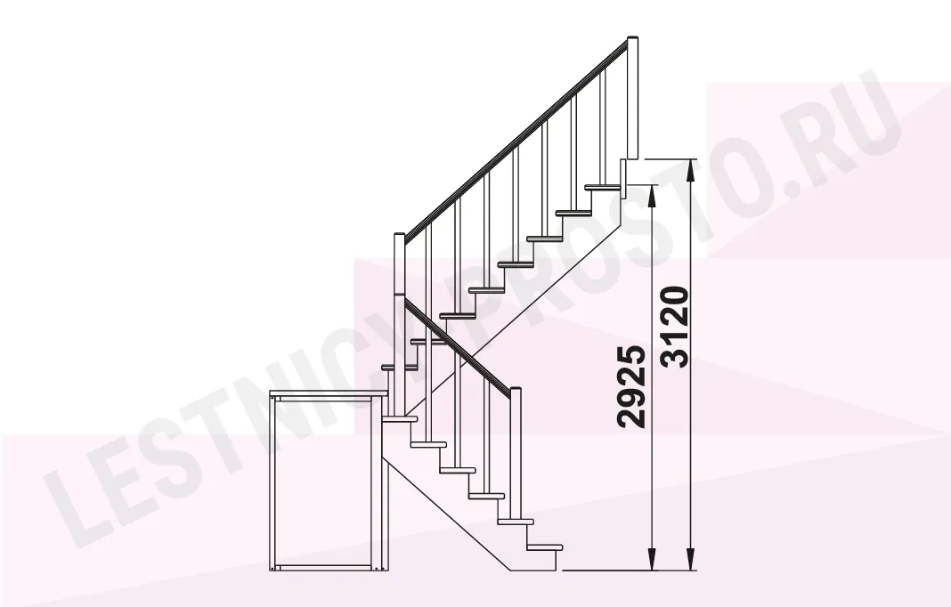 Базовый комплект включает в себя деревянные элементы лестницы и ограждения без какого-либо покрытия. Стандартные ограждения можно заменить на любые другие.