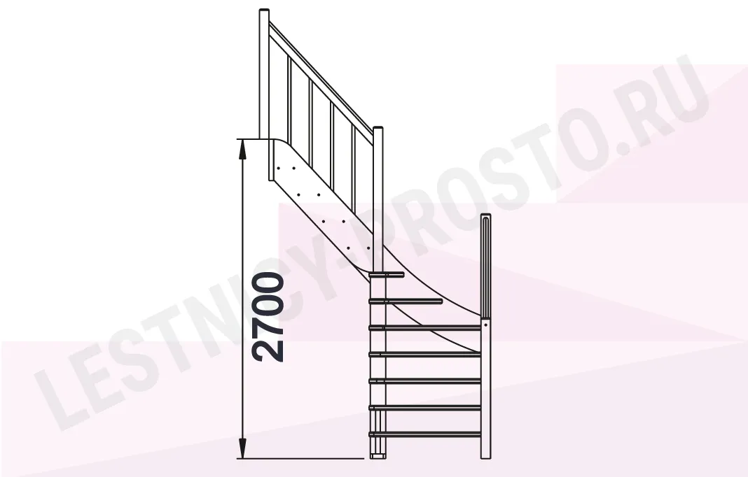 Базовый комплект включает в себя деревянные элементы лестницы и ограждения без какого-либо покрытия.