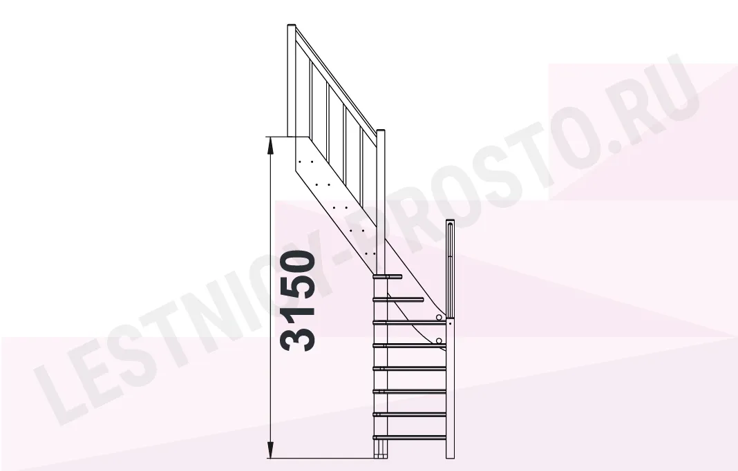 Базовый комплект включает в себя деревянные элементы лестницы и ограждения без какого-либо покрытия.