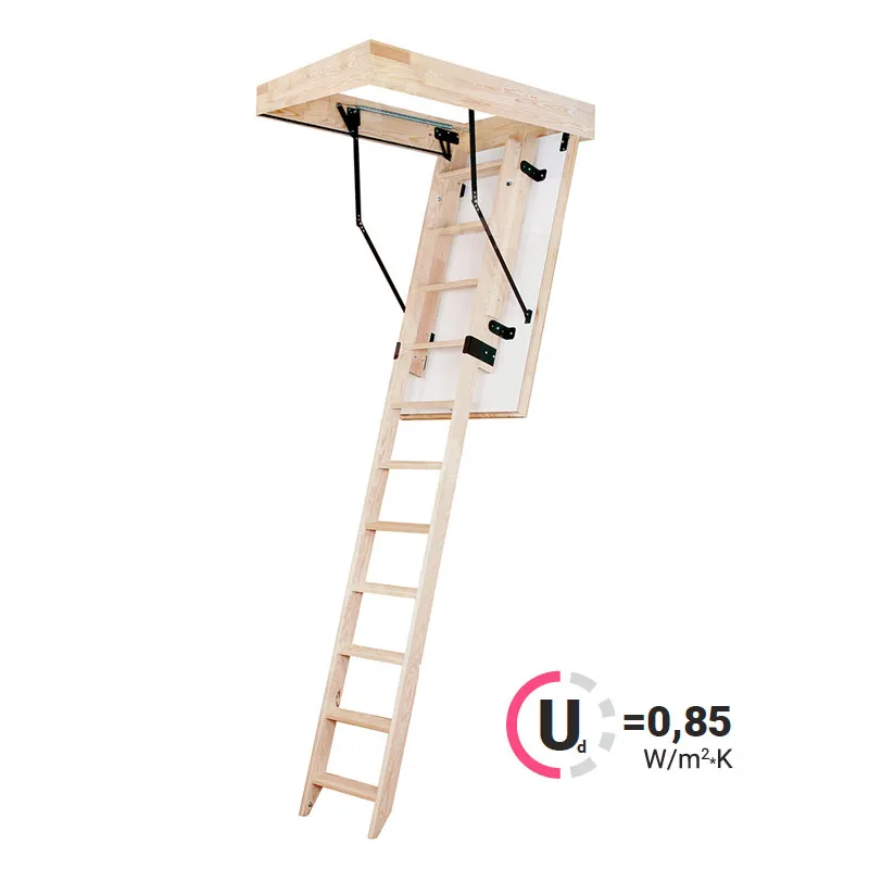Ступени и поручень лестницы изготовлены из ясеня, остальные элементы из сосны.