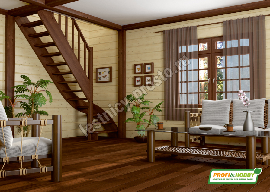 Базовый комплект включает в себя деревянные элементы лестницы и ограждения без какого-либо покрытия.