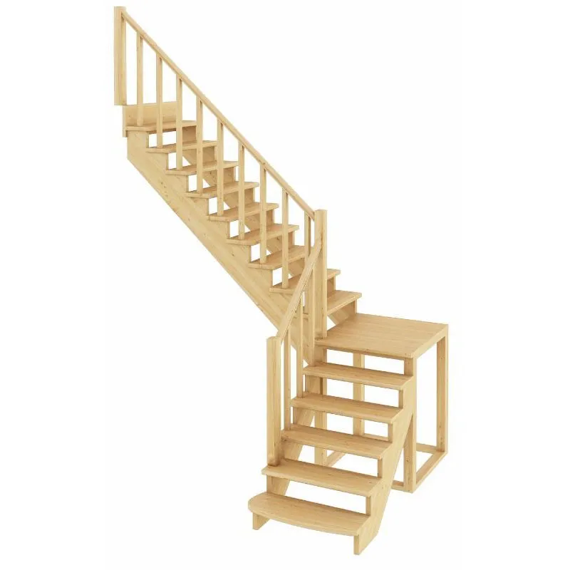 Базовый комплект включает в себя деревянные элементы лестницы и ограждения без какого-либо покрытия. В стандартной комплектации лестницы поставляются с квадратными столбами и точеными балясинами, при желании, можно заменить вид ограждений на любые другие из нашего каталога (оплачивается и оговаривается отдельно). Под заказ возможно изготовление данной лестницы с другими размерами, подходящими вашему помещению.