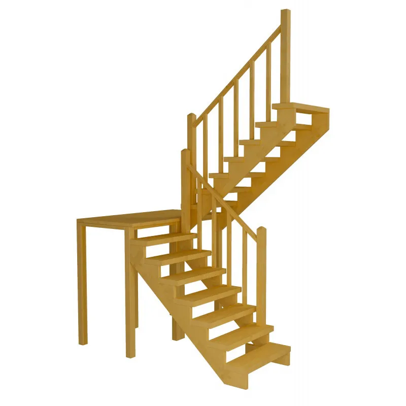 Классическая модель поворотной лестницы раскрывает всю природную красоту натуральных материалов. У лестницы комфортная высота шага, удобный широкий марш и угол подъема. Лестница изготавливается под заказ. Возможны варианты подходящие под разные размеры проёма. Базовое ограждение можно заменить на кованое или точеное. В дополнение можно приобрести бортики, подступени, или мини-подступени. Первую ступень можно заменить на пригласительную - лекальную. Стоимость указана для лестницы без какого-либо покрытия.