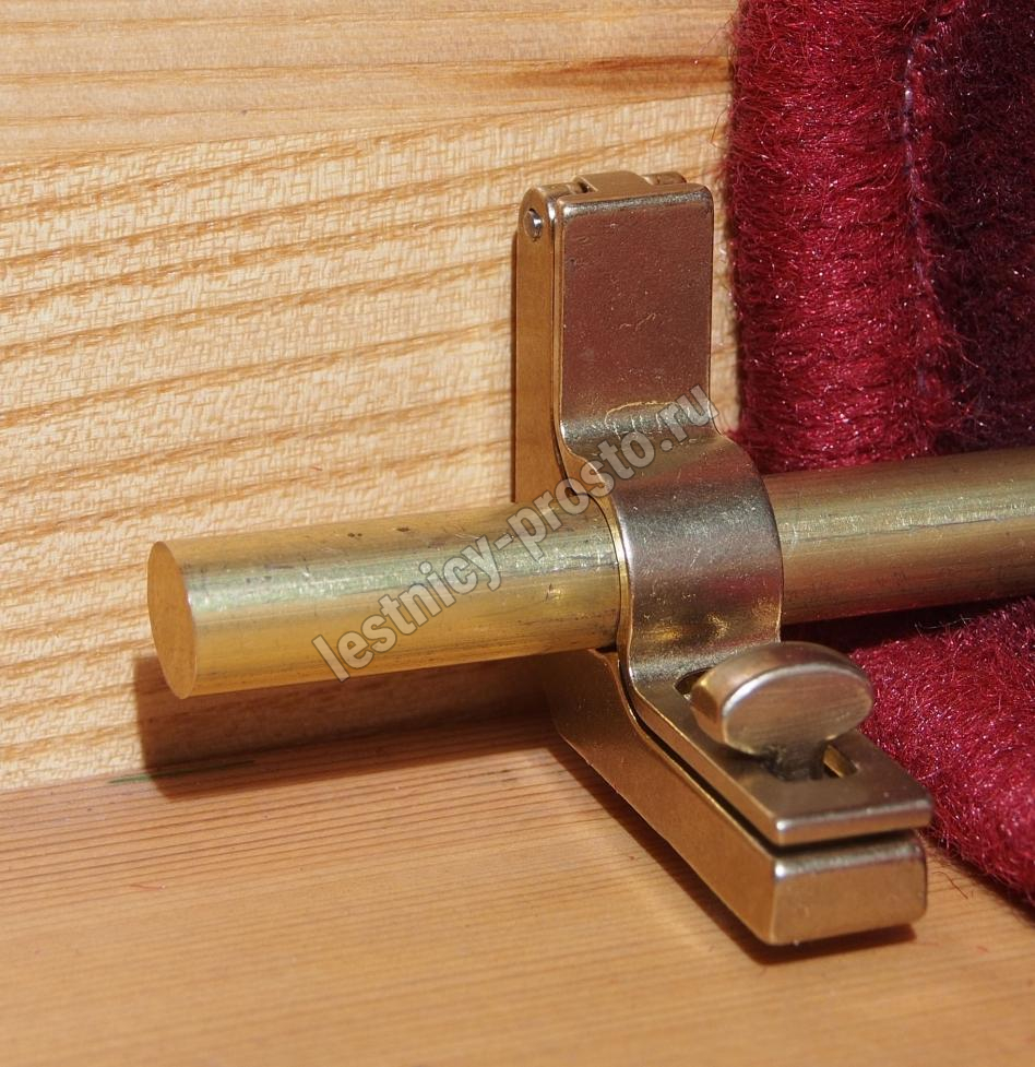 Ковродержатель комплектуется двумя держателями из латуни цвета золото, а также цельным прутком из латуни длиной от 251 до 300 см. Конструкция является сборно-разборной не требующей демонтажа креплений, что делает ее долговечной и очень удобной для чистки ковров и ковровых покрытий.