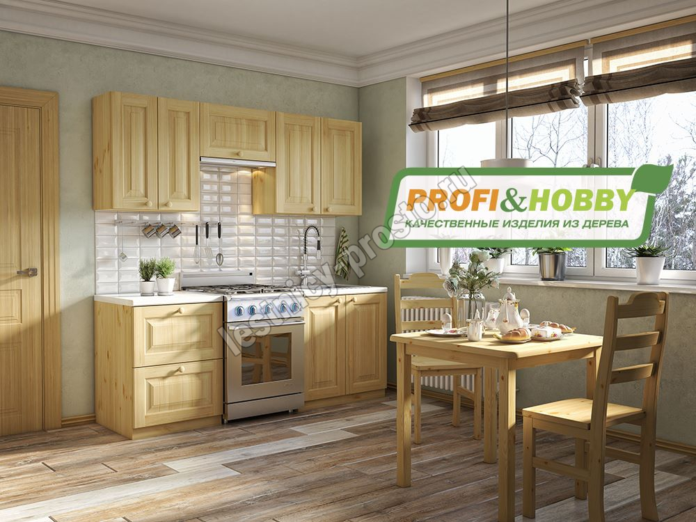 Небольшой кухонный гарнитур из 100% массива сосны шириной всего 2 и высотой 2,14 метра (верхние шкафы 72 см). Один из самых распространенных проектов кухни, который подойдёт для небольшой квартиры, загородного дома, гостиницы или хостела. Цвет на выбор - более 20 вариантов (при заказе кухни в нашем интернет магазине просьба указывать название цвета в комментариях).