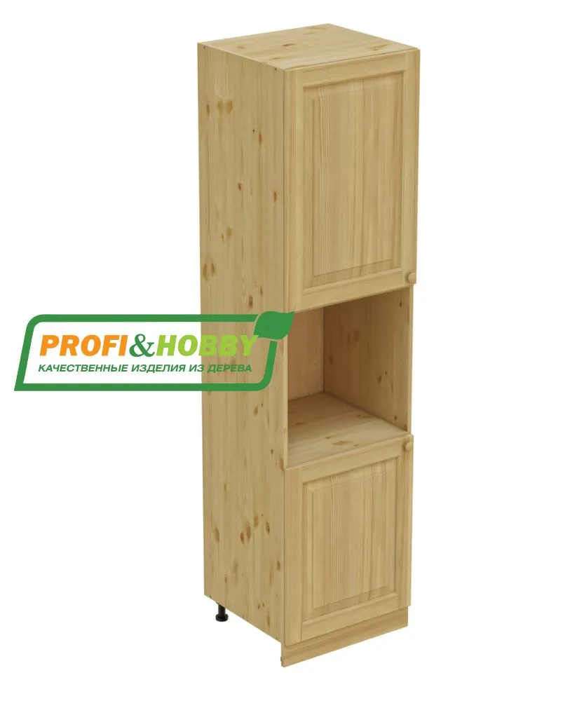 Шкаф высокий (пенал) изготовлен из 100% массива дерева, без шпона и без МДФ/ДСП.