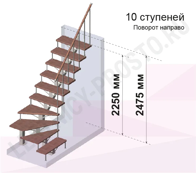 Лестница PROSTO MONO Г-образная h247.5 см, ступени хвоя
