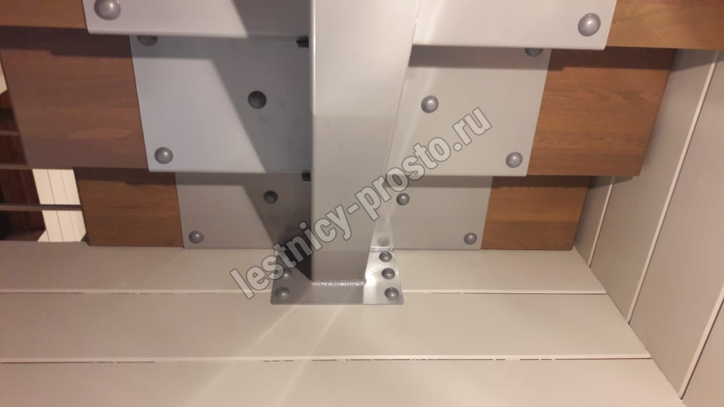 Основой лестницы служит цельносварной центральный косоур, который обеспечивает надёжную прочность конструкции и "парящий" дизайн, лестница с таким каркасом в интерьере смотрится легко и воздушно.