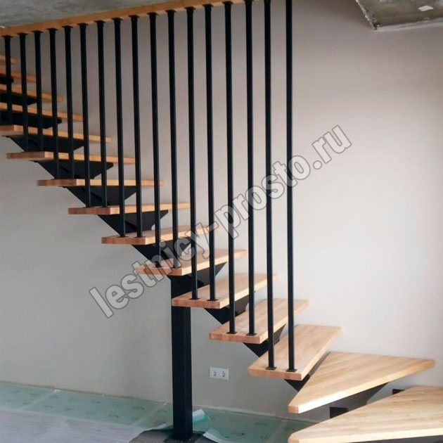 Лестница PROSTO MONO Г-образная h315 см, ступени бук