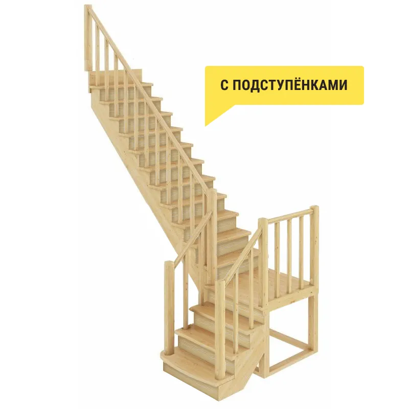 Ступени лестницы изготовлены из дерева категории А/В паркетной склейки без какого-либо покрытия. Вы можете заказать у нас предварительную профессиональную покраску деревянных элементов материалами БИОФА в широкий спектр цветов (стоимость зависит от количества ступеней).