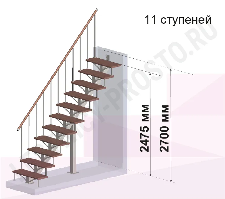 Лестница PROSTO MONO прямая, h270 см, ступени лиственница