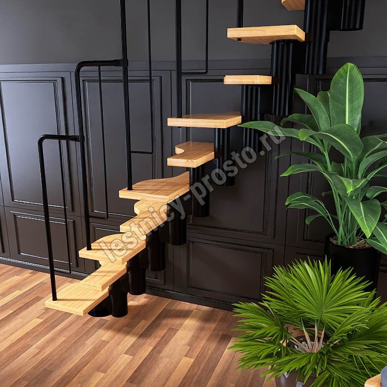 Лестница Prosto Urban Black гусиный шаг 600 мм, h198-288 см (11 ступеней), дуб