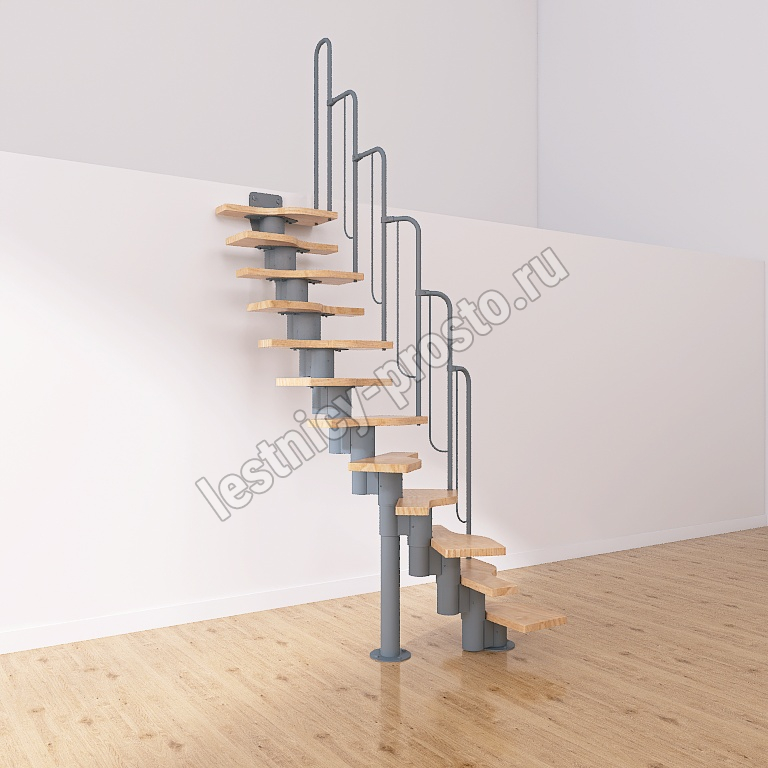 Лестница Prosto Urban Grey г-образная гусиный шаг 600 мм, h216-312 см (12 ступеней)