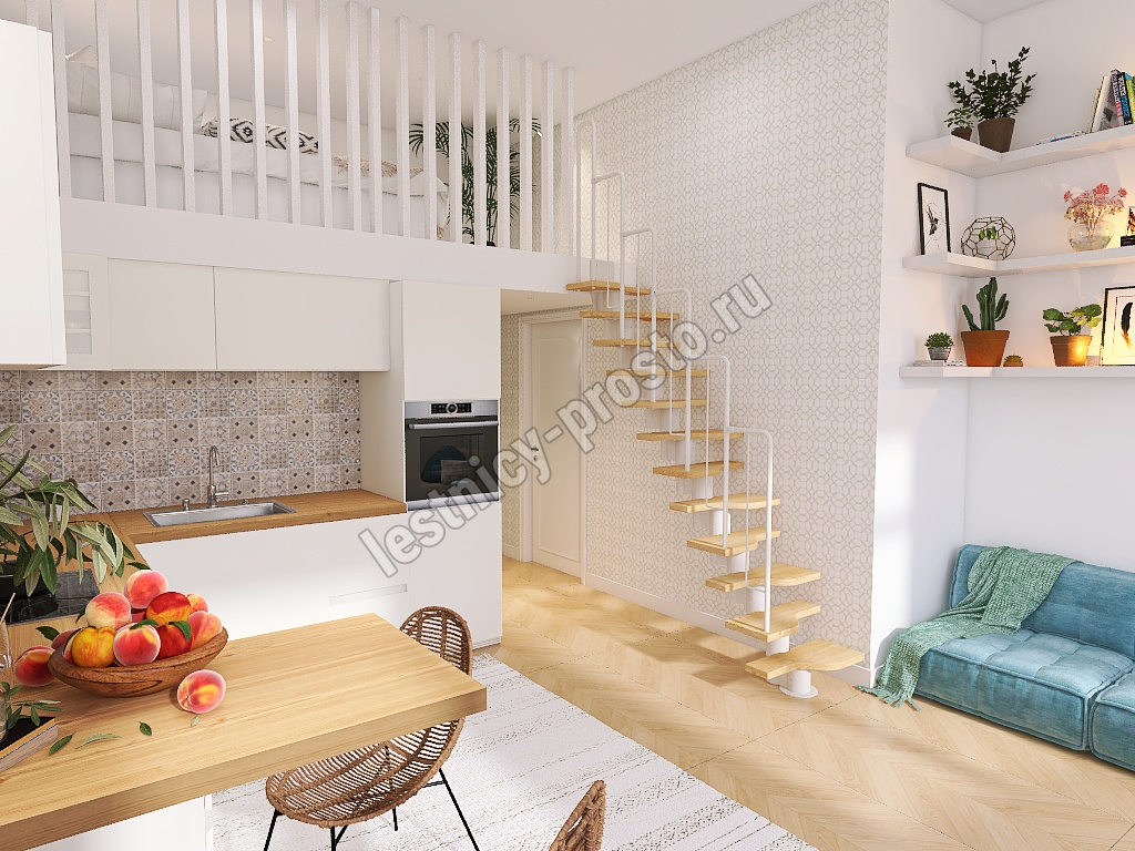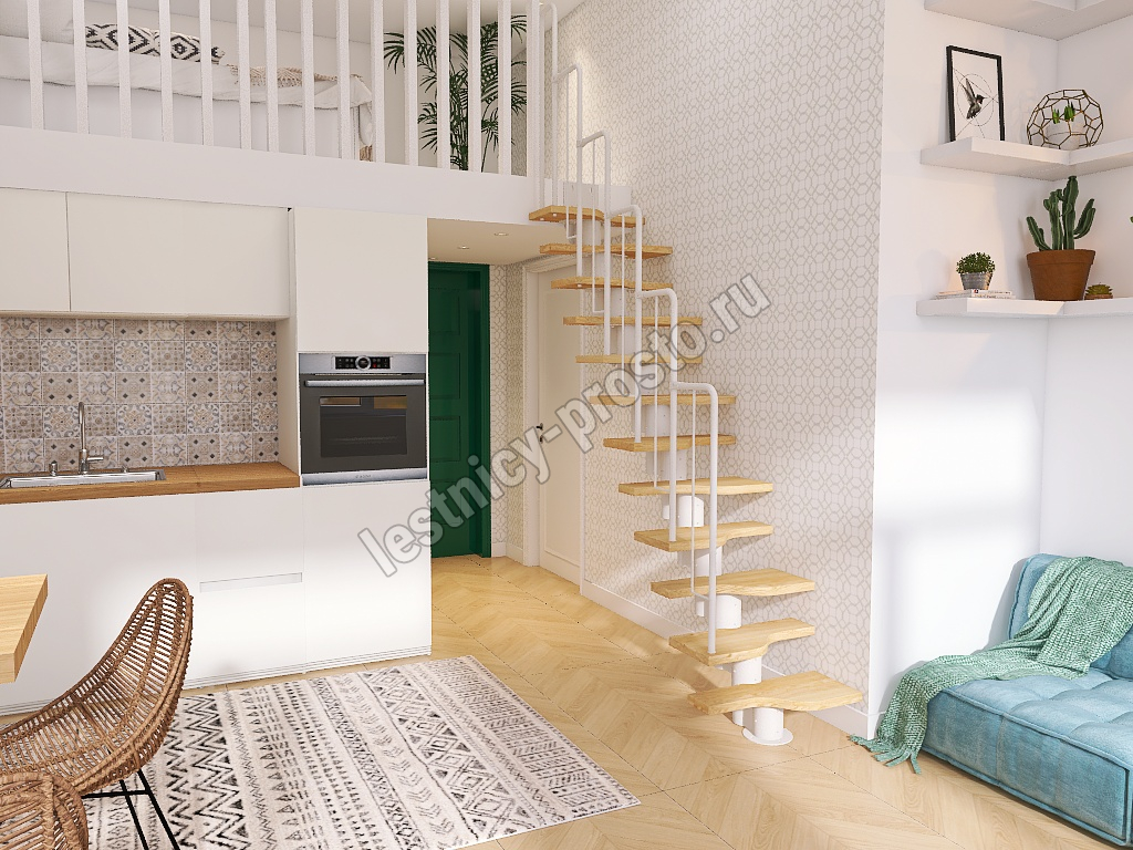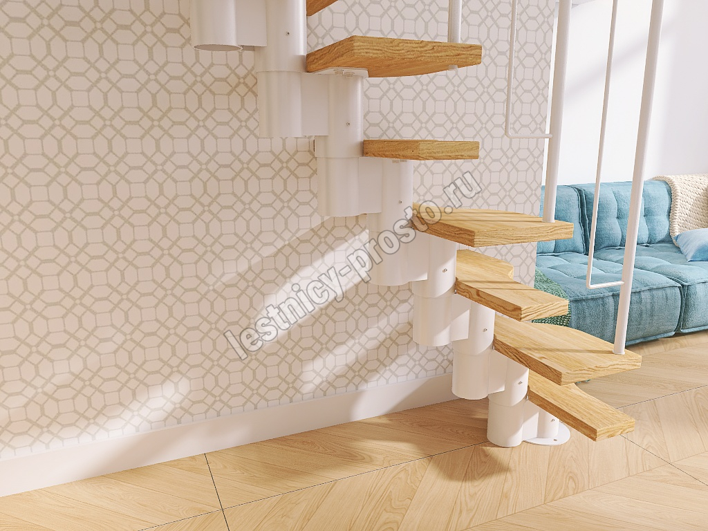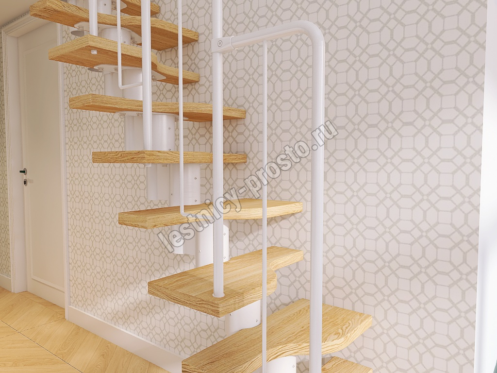 Лестница Prosto Urban White гусиный шаг 600 мм, h198-288 см (11 ступеней), дуб