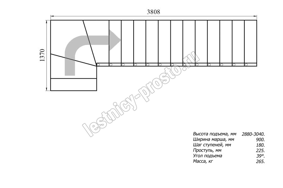 Высота лестницы 2880 - 3040 мм