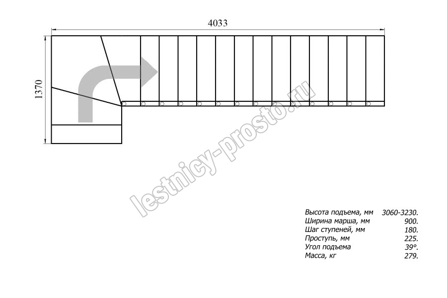 Модульная лестница Фаворит 180 3060-3230, Серый, Сосна, Крашеная, Без Ступений