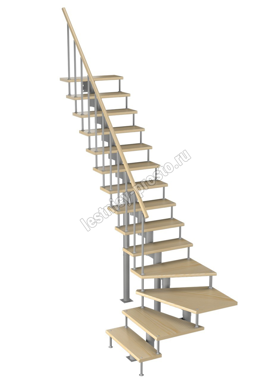 Модульная лестница Фаворит 225 3150-3290, Серый, Бук, Нержавеющая сталь