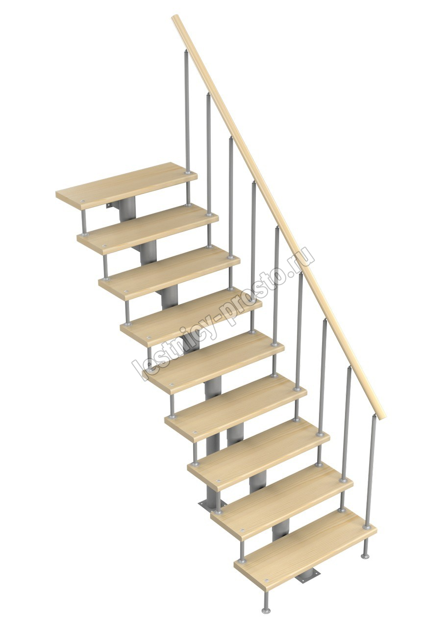 Модульная лестница Стандарт 2025-2115, Белый, Сосна, Нержавеющая сталь
