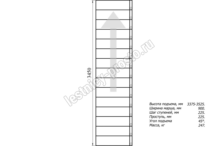 Модульная лестница Стандарт 3375-3525, Серый, Бук, Нержавеющая сталь