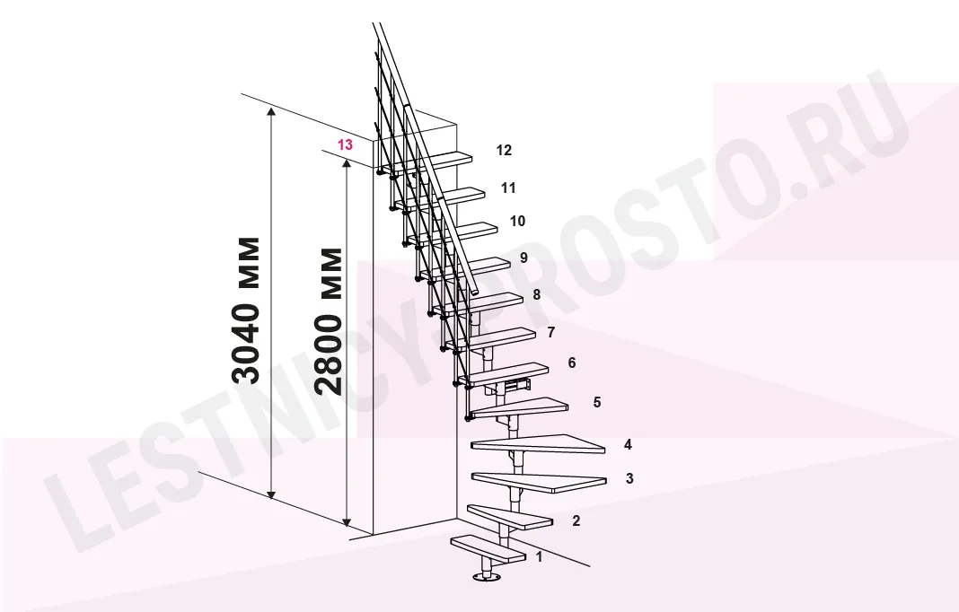 Возможно несколько вариантов сборки лестницы. По запросу - прямая модель. Высота шага регулируется при сборке.