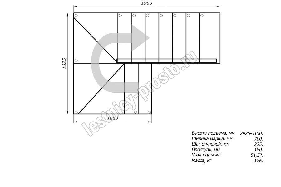 Модульная малогабаритная лестница Эксклюзив 2925-3150, Белый, Сосна, Нержавеющая сталь