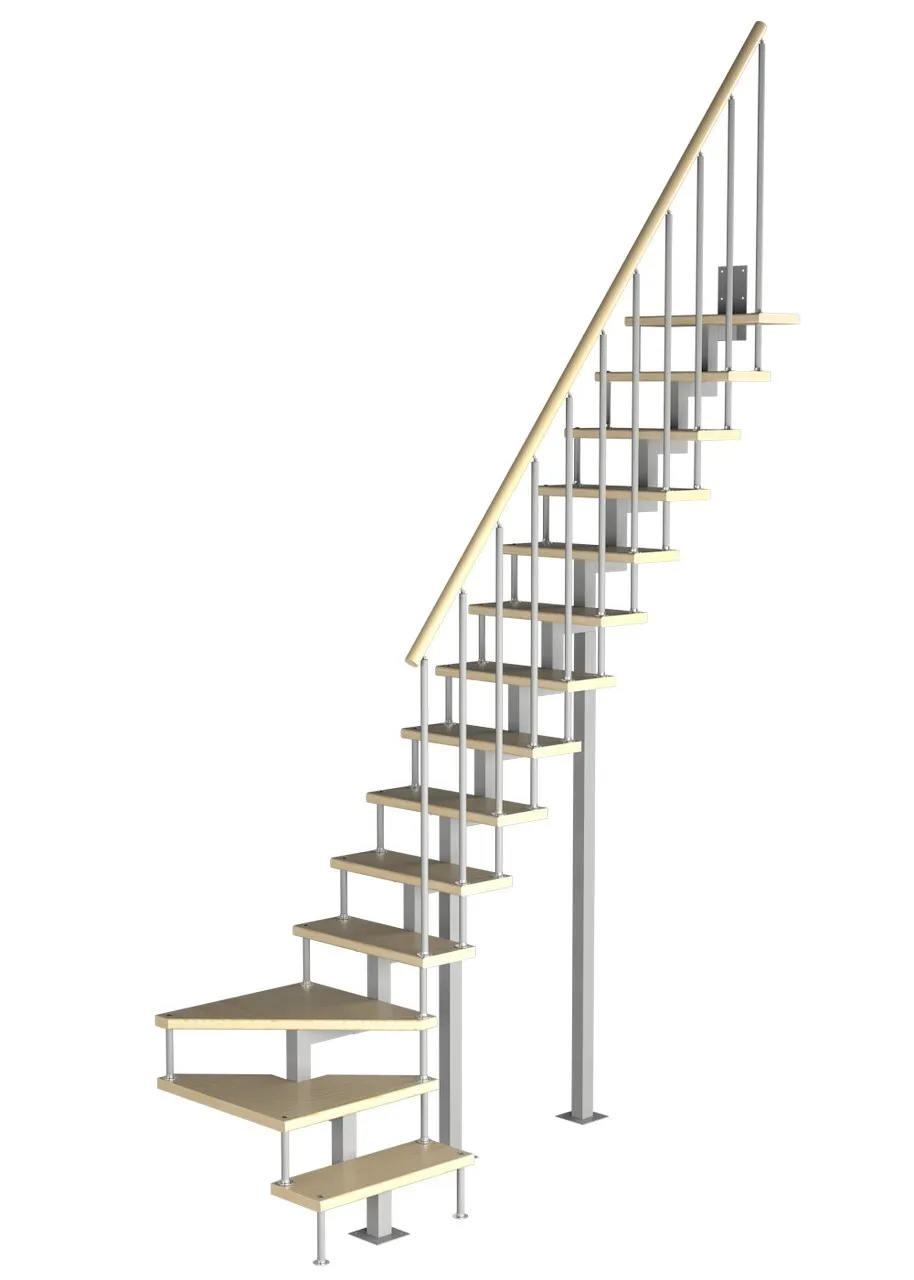 Модульная малогабаритная лестница Компакт 3150-3375, Белый, Лиственница, Нержавеющая сталь