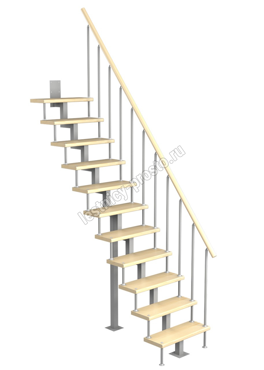 Модульная малогабаритная лестница Линия 2475-2700, Серый, Бук, Нержавеющая сталь