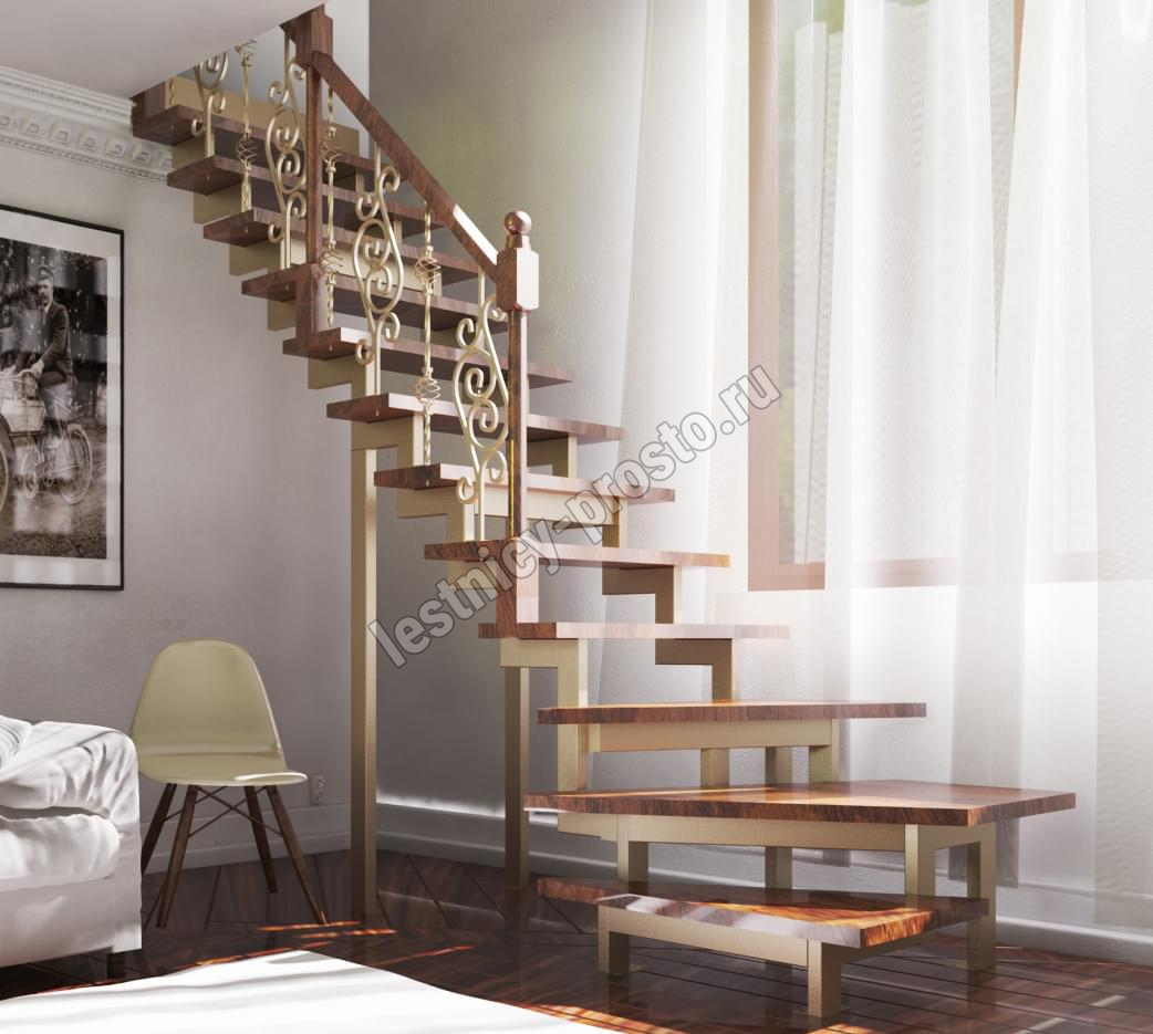Основой лестницы Prosto Due 40×80 служит двойной металлический каркас из профильной трубы 40×80 мм (включая 2 опоры на пол под поворотом), который обеспечивает надёжную прочность конструкции и современный актуальный дизайн.