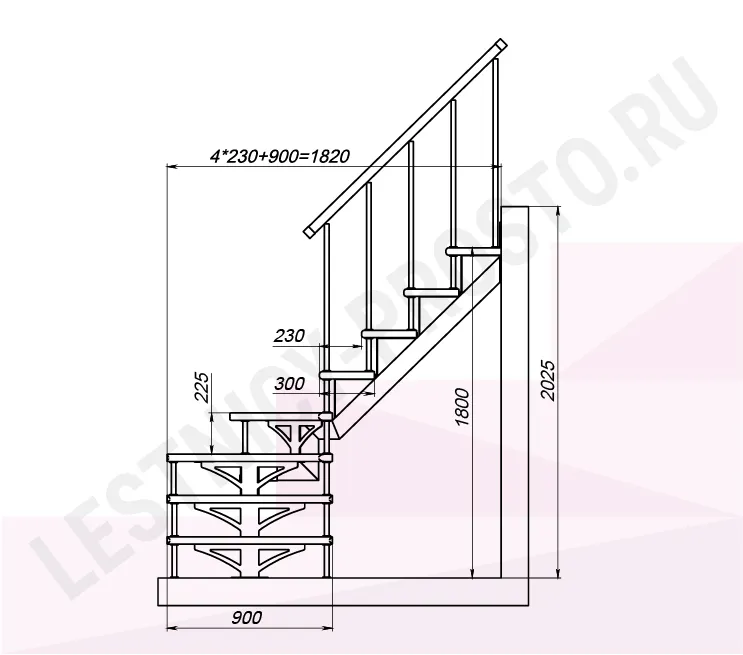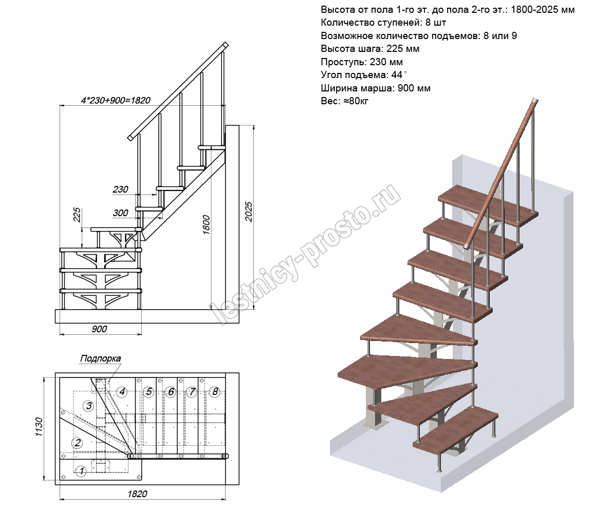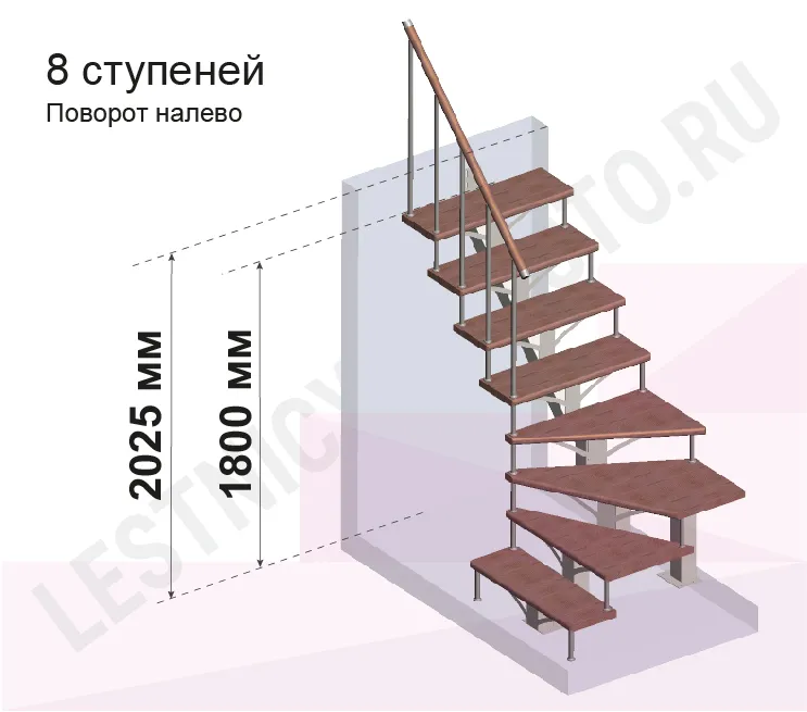 Лестница PROSTO MONO Г-образная h202.5 см, ступени хвоя