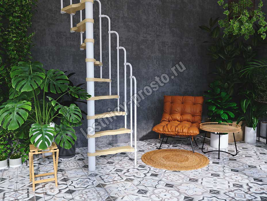 Винтовая лестница PROSTO MINI белая, 60×120 см, h252-276 см