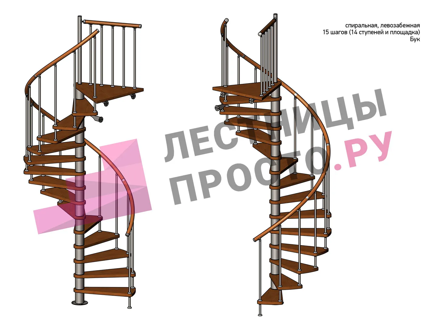 Винтовая лестница Prosto Spiral Black D160см, h325.7-369.8 см, бук