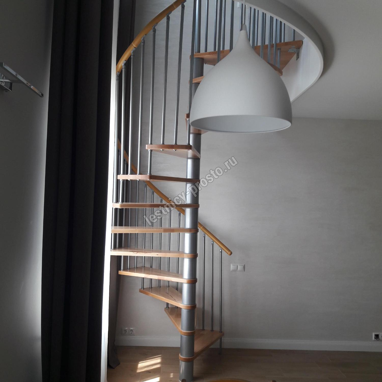 Винтовая лестница SPIRAL WOOD d160 см, серебро, лакированный дуб