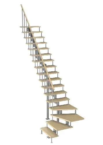 Благодаря возможности регулировать высоту шага с помощью пластиковых вставок (входят в базовый комплект), высоту лестницы можно варьировать в пределах от 2860 до 3090 мм. Кроме того, купив дополнительную секцию для этой лестницы, можно поднять высоту до 3320 мм. Ступени выполнены из сращенного дуба, покрыты износостойким твёрдым бесцветным лаком. Каркас серебристого цвета. Под заказ возможно изготовление лестницы другой расцветки.