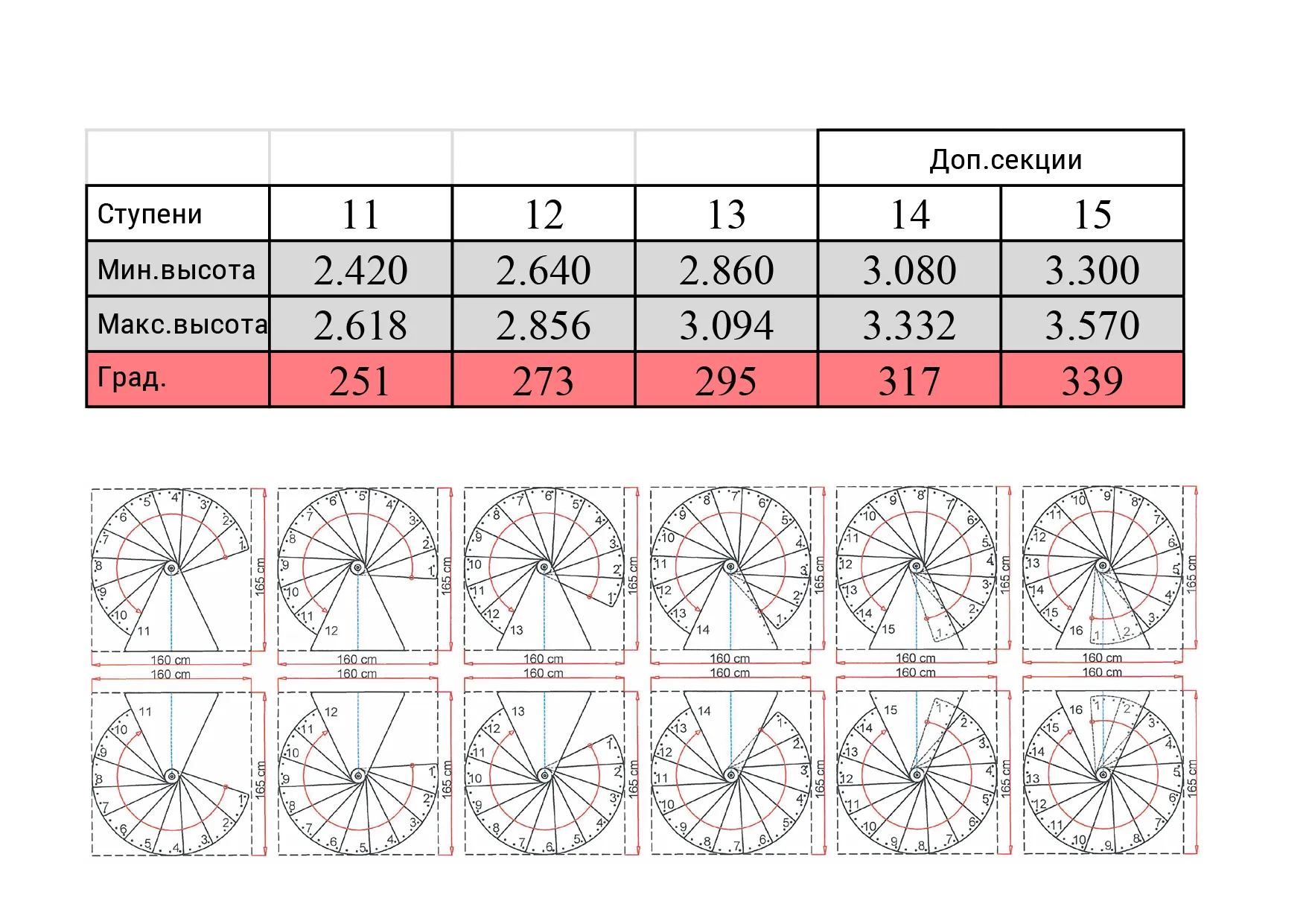 Высота лестницы Venezia с разным количеством ступеней