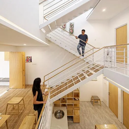 Для домашних лестниц используют любые материалы, которые нравятся хозяину и подходят по бюджету. Но надо учитывать, что иногда материалы не сочетаются. Так, массивное бетонное сооружение может оказаться слишком тяжёлым для пола из досок, а ступени из ковки - недостаточно безопасными для дома, где живут дети. Варианты из стекла и полимерных материалов - не самые простые в монтаже, поэтому их установку практичнее доверить специалистам. Традиционно для коттеджей, дач и квартир выбирают дерево и металл или капитальный бетон.