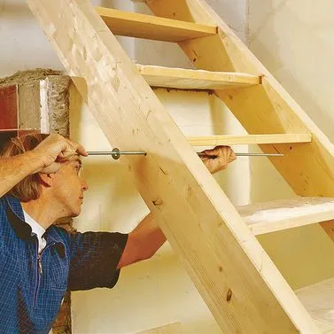 Установите получившийся марш возле стены и закрепите его с помощью крепежа (дюбелей, анкеров, уголков).