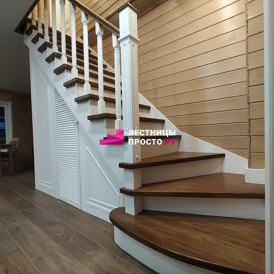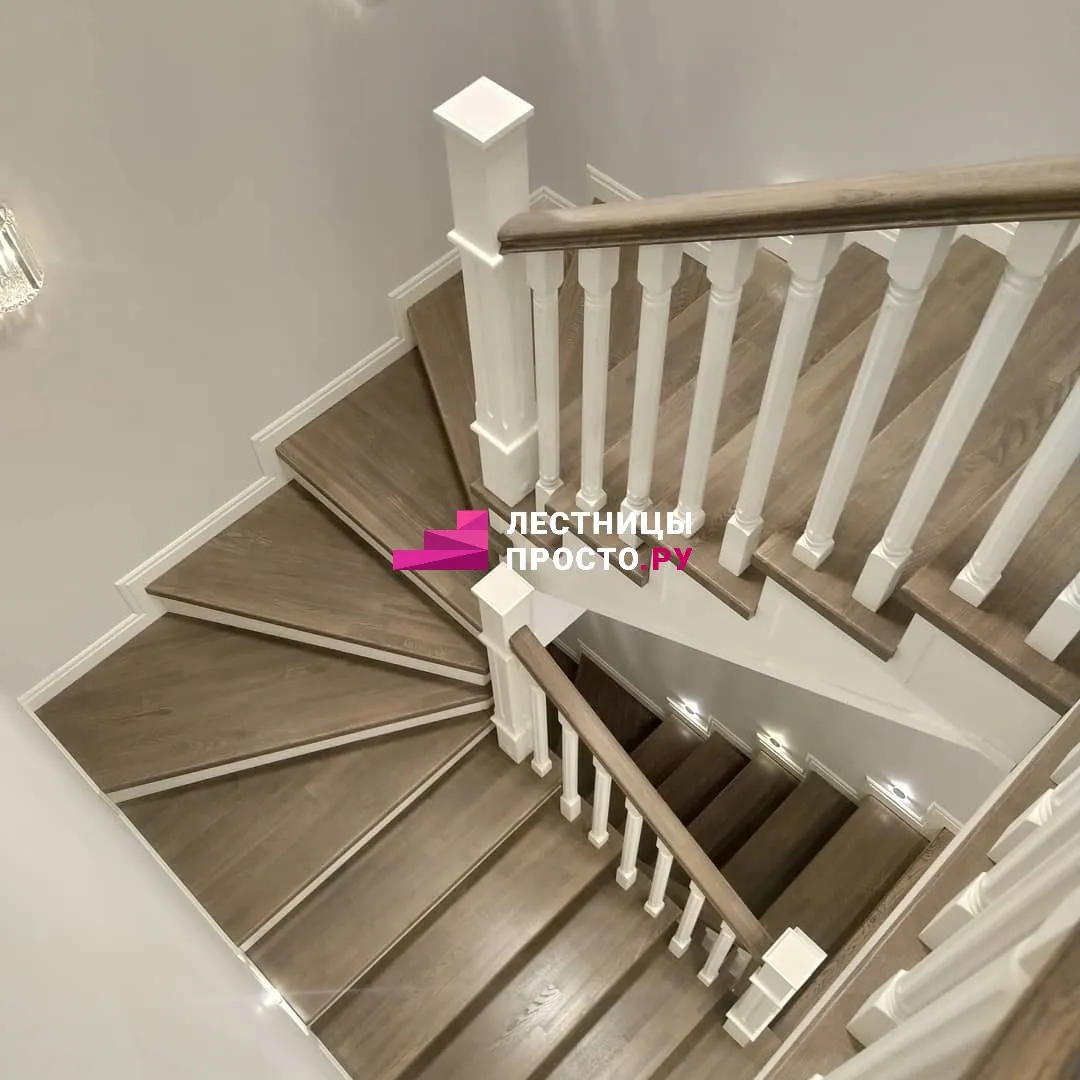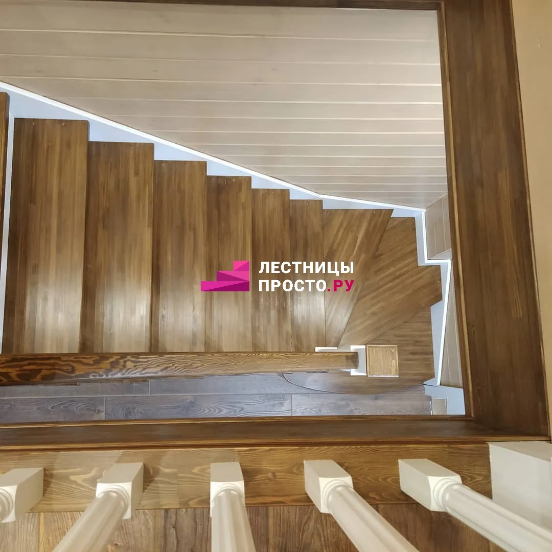Лестница LP из сосны на второй этаж с поворотом на 180 градусов
