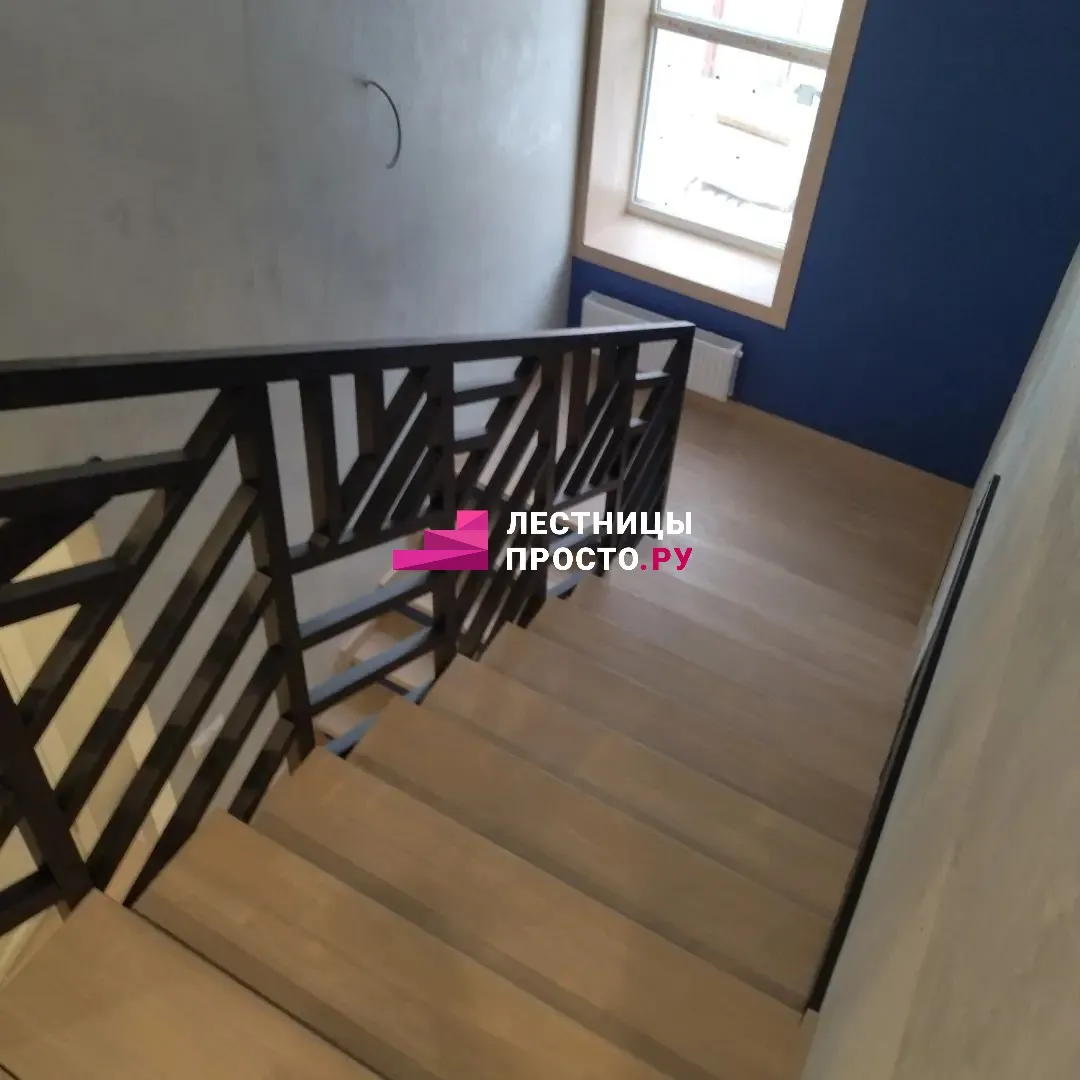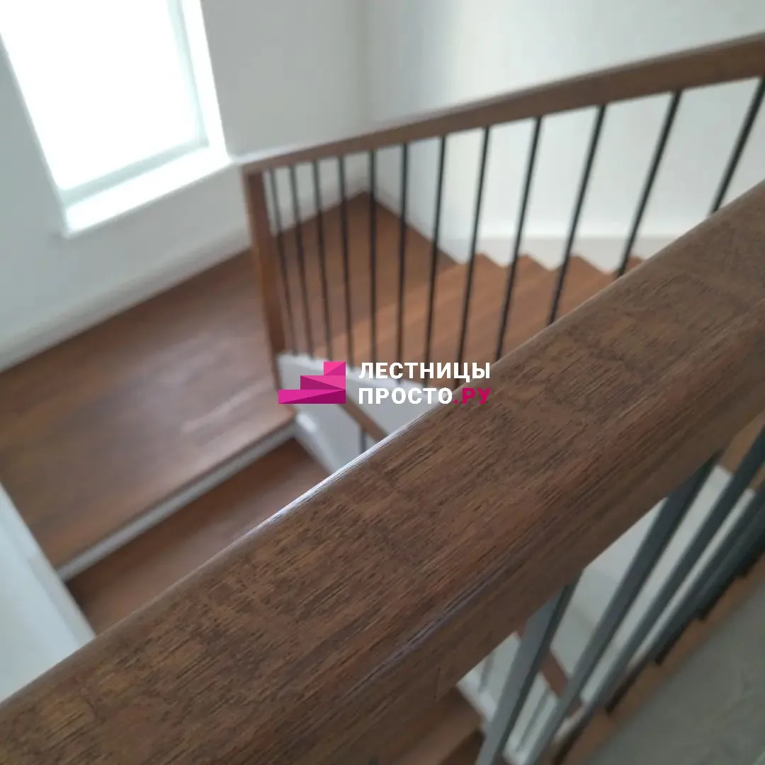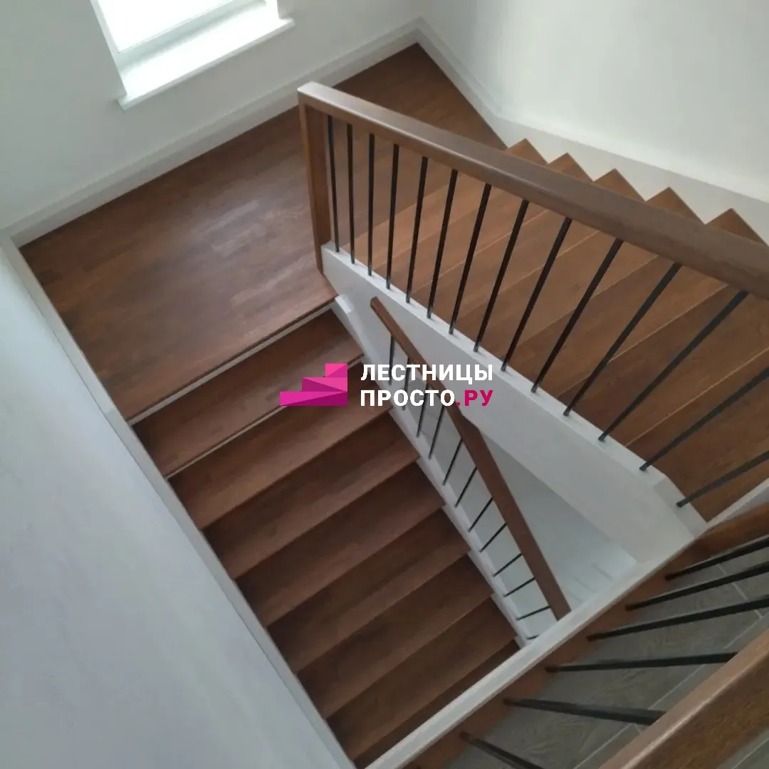 Отделка двухмаршевой бетонной лестницы деревом LP-1-44
