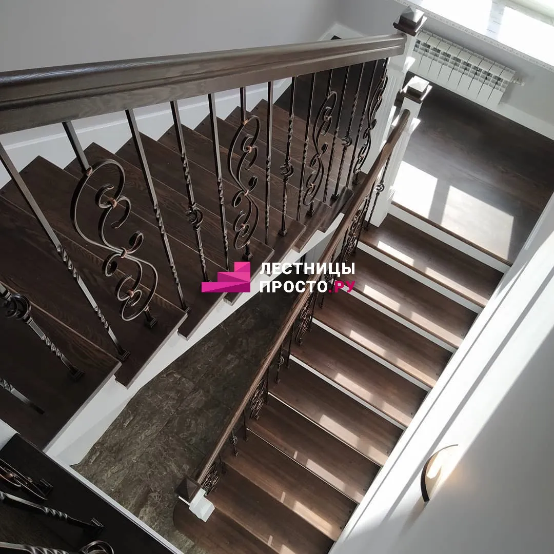 Металлическая лестница с дубовыми ступенями и ограждением LP-1-20