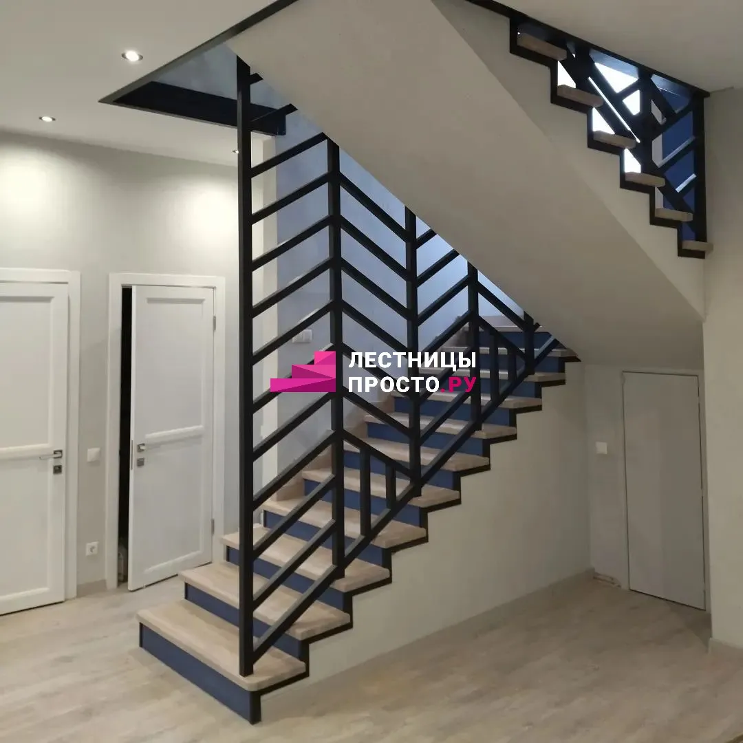 Современная лестница LP металлическая с ограждением тринити п-образная в частном доме