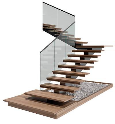Отделка бетонной лестницы с площадкой в частном доме LP-1-16